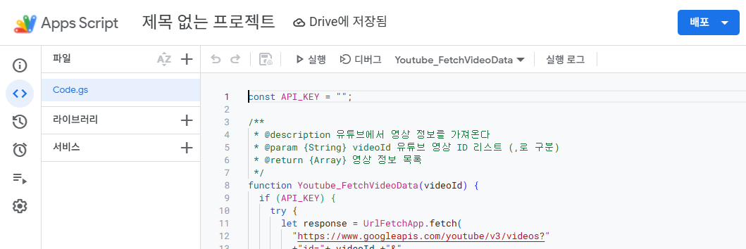 4-2. App Script 코드에 API KEY를 입력합니다
